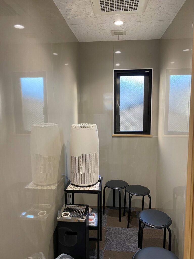 近隣への配慮のために、たばこ用の業務用空気清浄機を設置し、煙が屋外へ直接排出されないようにしています。